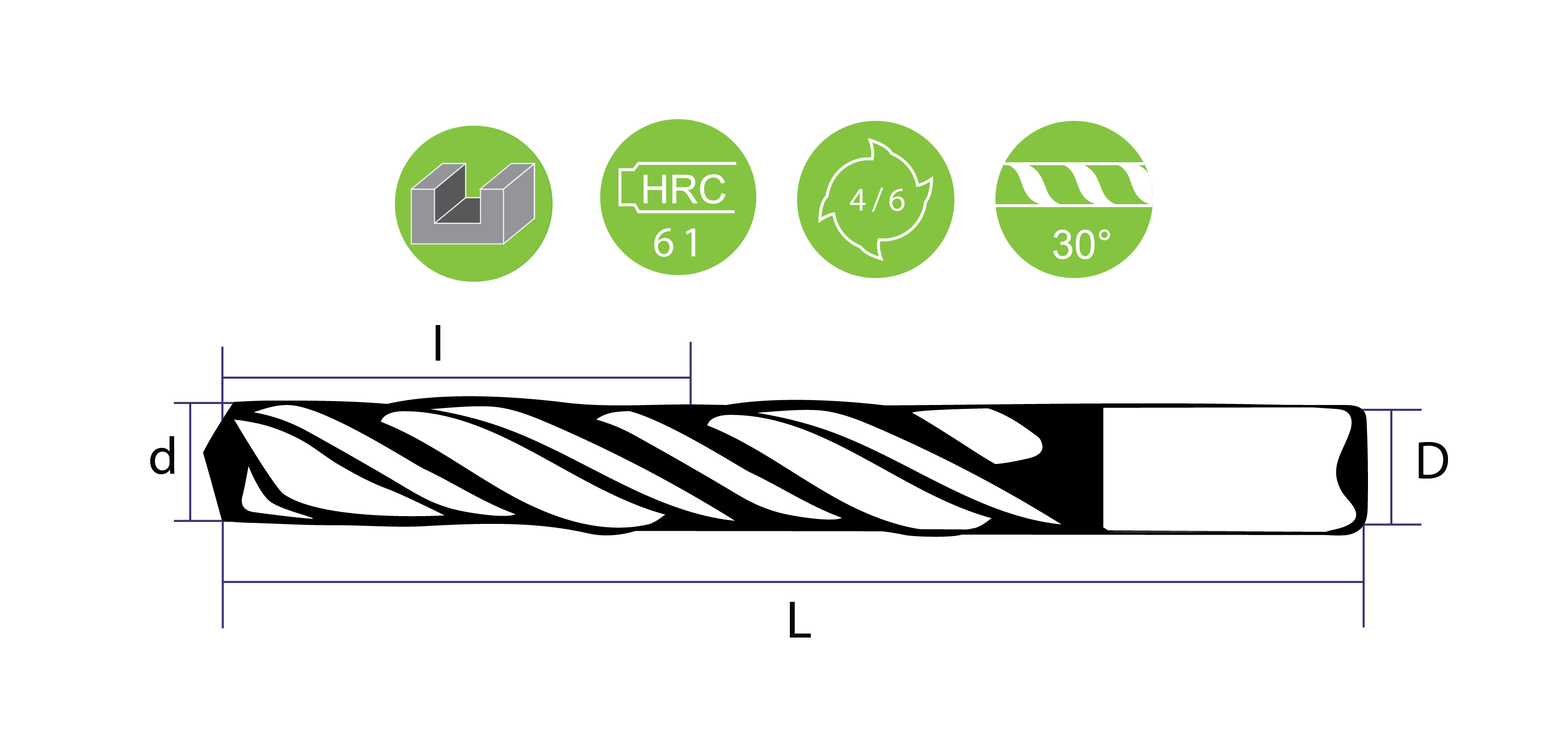 ⟩ Изработени от високоскоростна стомана (High SpeedSteel-HSS) с твърдост HRC 61-64.5°. Благодарение на супер твърдата високоскоростна стомана (HSS) фрезите извършват по-дълбоки разрези с по-малко пасове в гъста пяна, увеличавайки производителността.