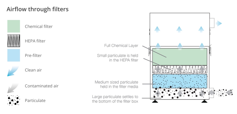 Предимства: ⟩Ниско ниво на шум ⟩ Компактни размери (малка заета площ) ⟩Дълъг експлоатационен живот и ниска цена на резервните филтри