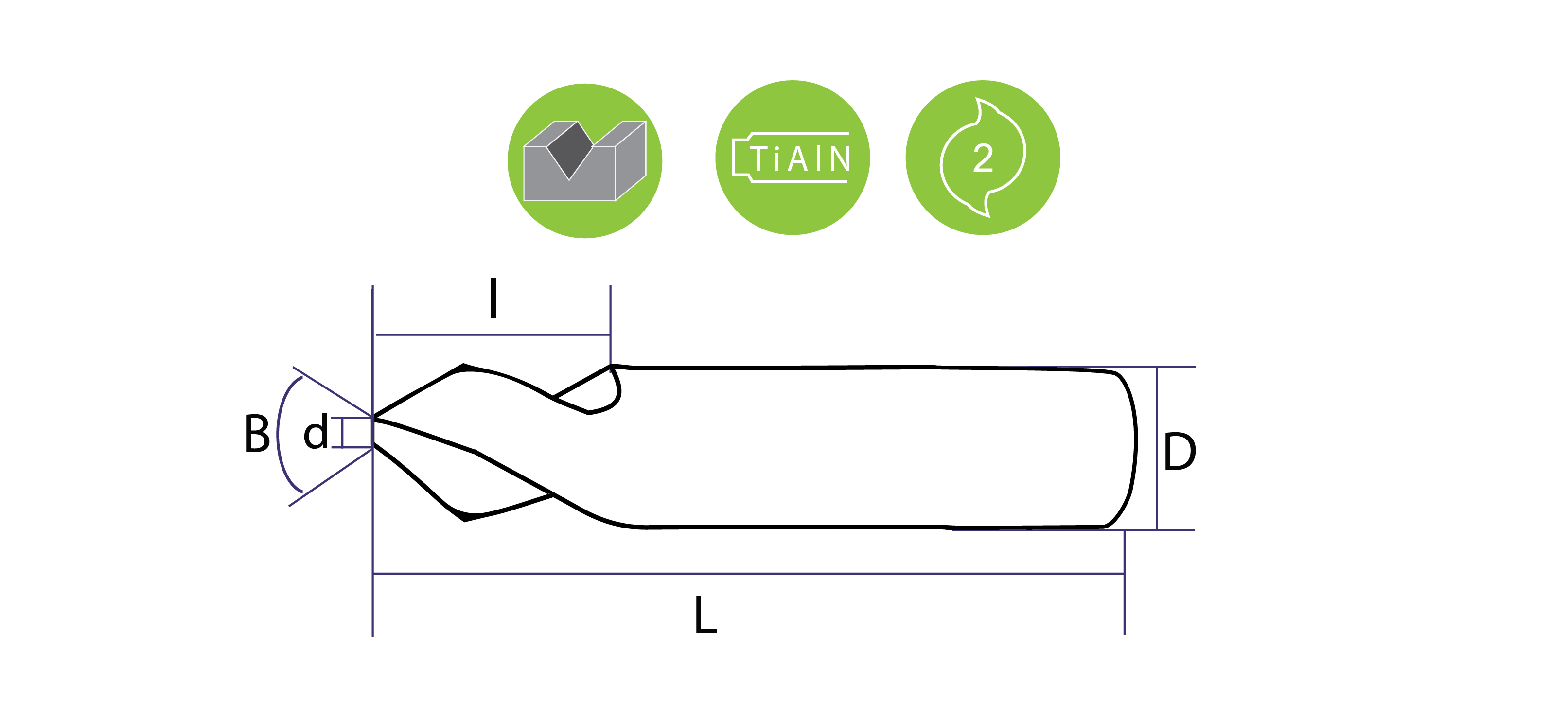 Проектиран за фрезовани канали на алуминиеви композитни (сандвич, ACM) материали като Italbond®, Alucobond® и Dibond® с V-образни форма. Върха му е 2mm, плосък. За по-голяма издържливост е използвано специално TiAlN покритие (Titanium-aluminium-nitride coating) с дебелина 4μm, коефициент на триене 0,5 μ и нано твърдост 35 Gigapascal (GPa). Покритието предлага висока устойчивост на топлина и окисление (800 °C). Това позволява работа с по-висока скорост на рязане и по този начин ускоряване на работните процеси. В сравнение с непокритите инструменти, TiAlN покритието, в зависимост от приложението, увеличава до десет пъти по-дълъг експлоатационен живот.