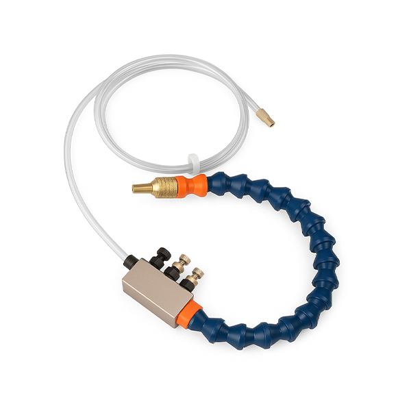 Как работи: Системата действа чрез пръскане на фина мъгла от охлаждаща течност върху режещия инструмент и детайла по време на обработка. Тази мъгла абсорбира топлината, произведена от рязането, охлаждайки инструмента и детайла и намалявайки триенето.
