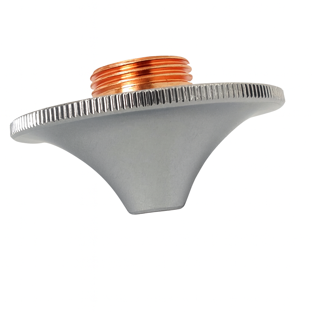 Двойна дюза за Fiber лазер – рязане с кислород Двойната дюза е оптимизирана за рязане на черни метали и стомана с Fiber лазер. Работи с кислород като газ за рязане, което позволява по-висока скорост, стабилност и ефективност при обработката на въглеродна стомана и конструкционни метали. Благодарение на двойната си структура, осигурява по-добър контрол на газовия поток и прецизно рязане с минимални дефекти.