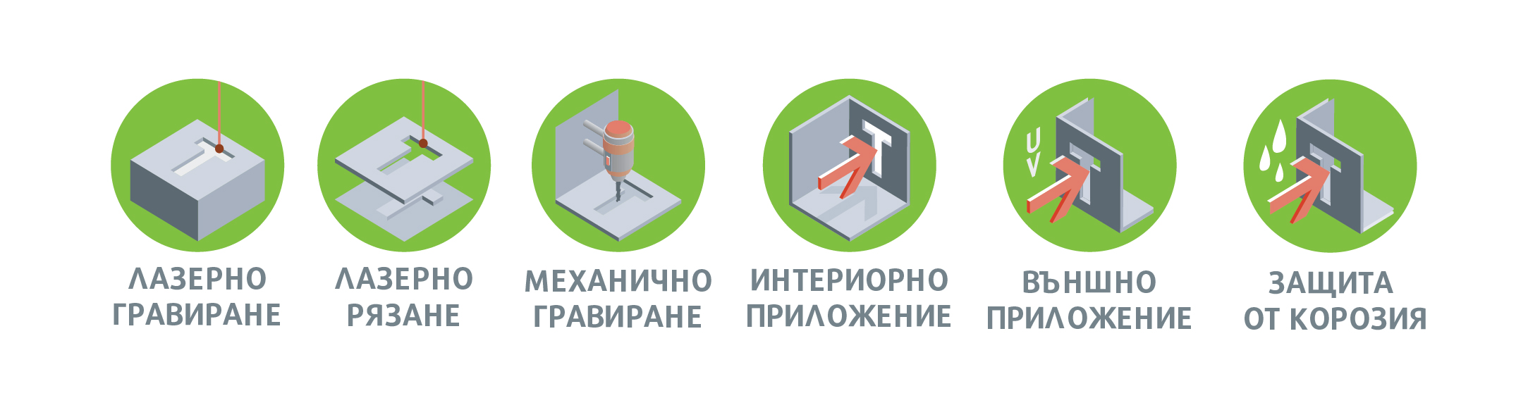 ⟩ При гравиране с СО2, YAG или FIBER лазер гравираните елементи стават бели на цвят